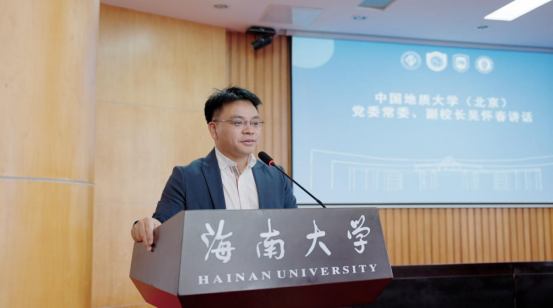 李步洪代表学校向所有支持本次研修班的领导和老师致以谢意,感谢四所高校校领导对本次研修班的高度重视,感谢中国石油大学(北京)和中国地质大学(北京)为海南高校发展提供宝贵的学习交流的机会,感谢归国青年人才对海南大学的关注与支持。他指出,海外归国青年教师是高校教育教学与科研工作的中坚力量,肩负着推动教育改革与建设教育强国的重任。本次研修班通过深入了解国情和产业发展现状,引导归国青年教师实地感受海南自由贸易港的发展布局,坚定文化自信,强化使命担当,将个人职业发展与建设教育强国紧密融合。他结合海南自由贸易港及海南大学的发展成就,号召归国青年教师坚持立德树人,为推动科技自立自强再立新功,在讲好中国故事上争当表率,为全面建设社会主义现代化国家、实现中华民族伟大复兴的中国梦贡献智慧和力量。