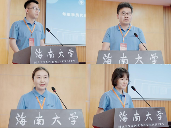 学员代表中国石油大学(北京)高立、中国地质大学(北京)吴鸣谦、海南热带海洋学院张馨予、海南大学张慧依次进行结业汇报,他们表示本次研修内容丰富、形式多样、收获颇丰,将以此次研修为起点,扎根教育,勇探前沿,为新时代人才培养书写教育答卷。