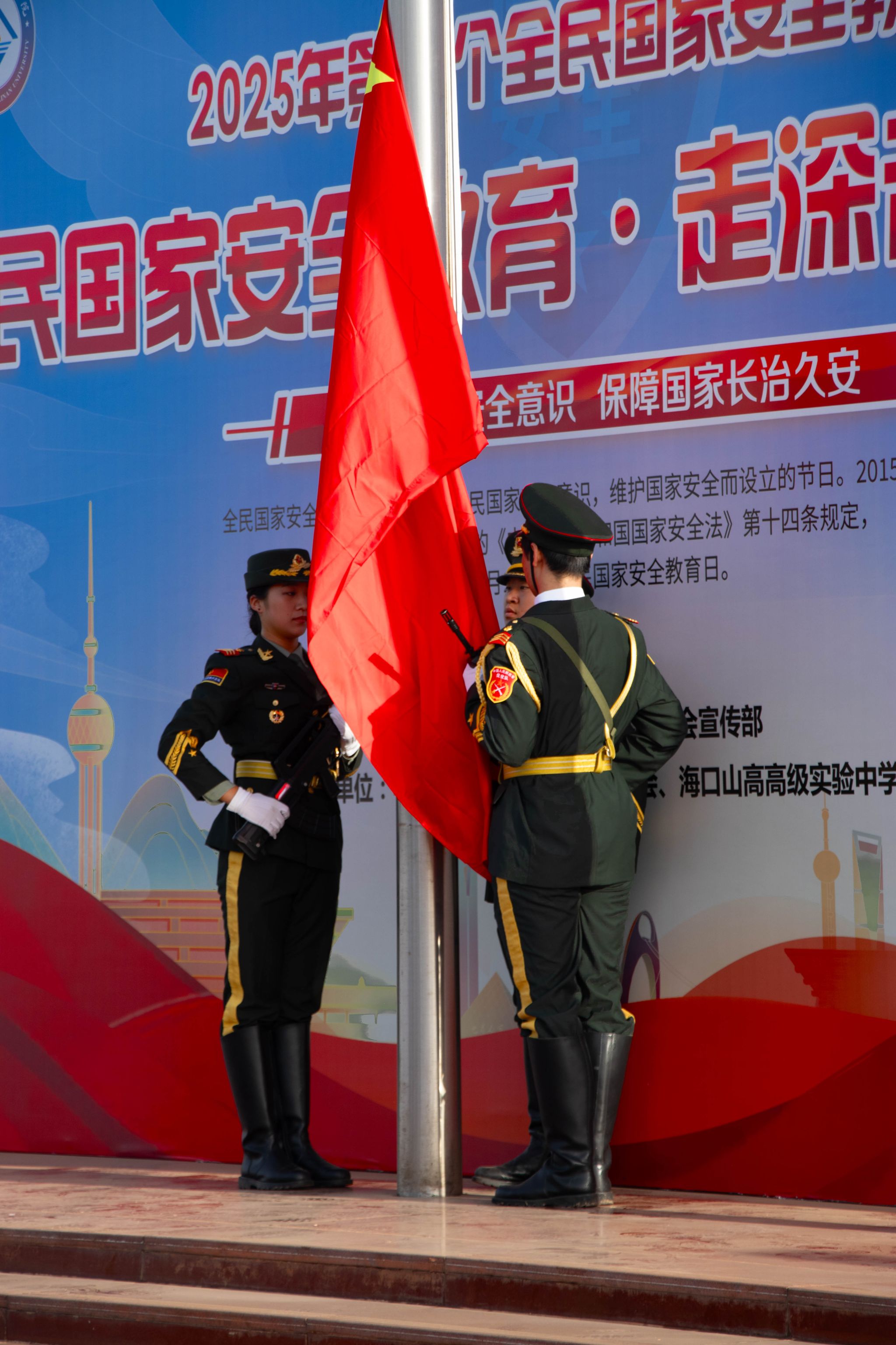 为深入学习贯彻总体国家安全观,持续推动国家安全宣传教育工作走深走实,4月15日,在第十个全民国家安全教育日之际,2025年全民国家安全教育日宣传系列活动启动仪式在观澜湖校区开展。本次活动由海南大学党委宣传部主办,海南大学今朝书院、海口市山高学校联合承办。